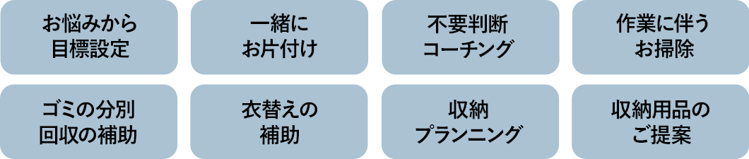 ご一緒に作業することで片づけ方も自然と身につき、リバウンドしにくい暮らしをかなえます。